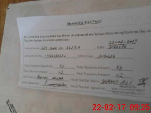 | Attendance Register | Head Teacher | MEA with School | Visit Proof |