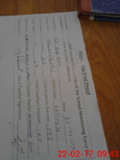 | Attendance Register | Head Teacher | MEA with School | Visit Proof |