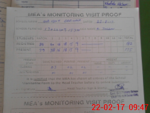 | Certified that this School was Inspected by the Undersigned MEA/DMO Today and the Information Stated Above is as Per Record. | |||||