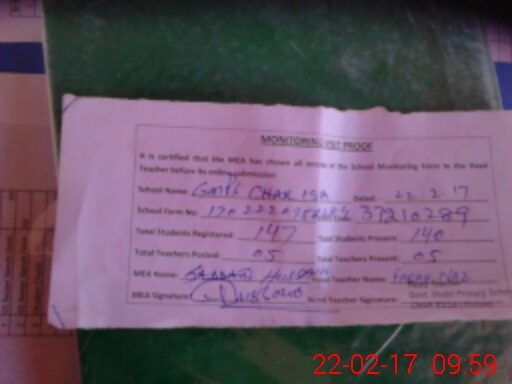 | Attendance Register | Head Teacher | MEA with School | Visit Proof |