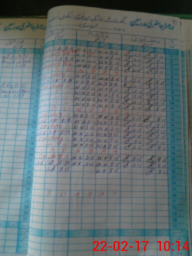 | CNIC | Full Name | Designation | R/C | Absence During Last Calender Month |