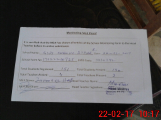 | Attendance Register | Head Teacher | MEA with School | Visit Proof |