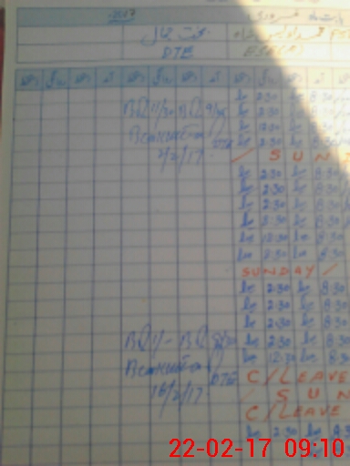 | CNIC | Full Name | Designation | R/C | Absence During Last Calender Month |