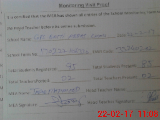 | EMIS Code: 33240202 | Name of School: GPS BASTI ABBASS KHAN | |||