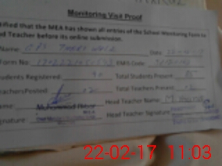 | Attendance Register | Head Teacher | MEA with School | Visit Proof |