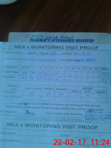 | Attendance Register | Head Teacher | MEA with School | Visit Proof |
