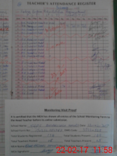 | Attendance Register | Head Teacher | MEA with School | Visit Proof |