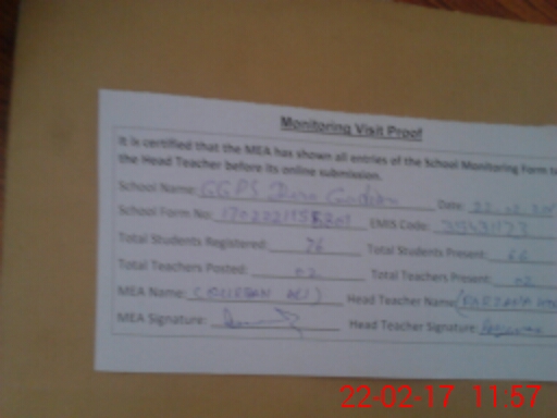 | Attendance Register | Head Teacher | MEA with School | Visit Proof |