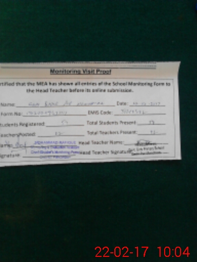 | School Visited by School Health & Nutrition Supervisor (No. of Visits) | 1 | Name1: | Ali Akbar | Name2: | |