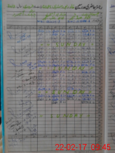 | CNIC | Full Name | Designation | R/C | Absence During Last Calender Month |
