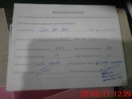 | EMIS Code: 33220040 | Name of School: GHS ALI PUR | |||