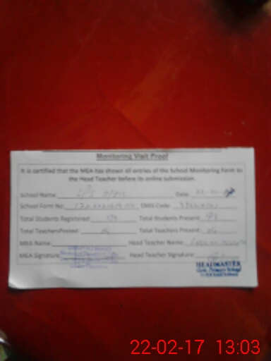 | Attendance Register | Head Teacher | MEA with School | Visit Proof |