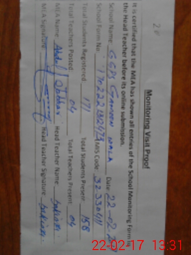 | EMIS Code: 32330411 | Name of School: GGPS GAMOON WALA | |||