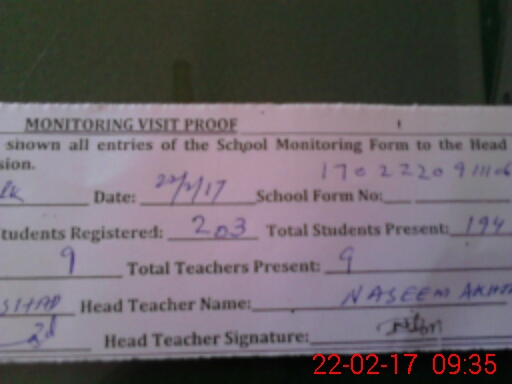 | Attendance Register | Head Teacher | MEA with School | Visit Proof |