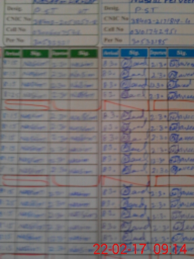 | CNIC | Full Name | Designation | R/C | Absence During Last Calender Month |