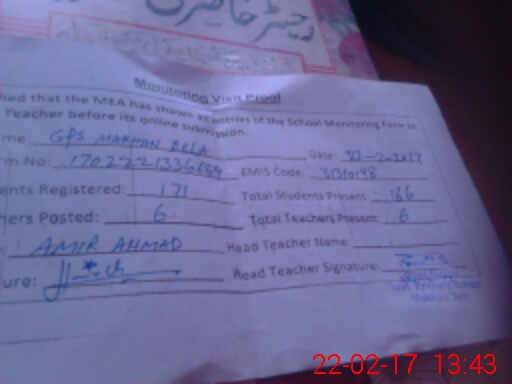| EMIS Code: 31310198 | Name of School: GPS MAKHAN BELA (After Noon) | |||