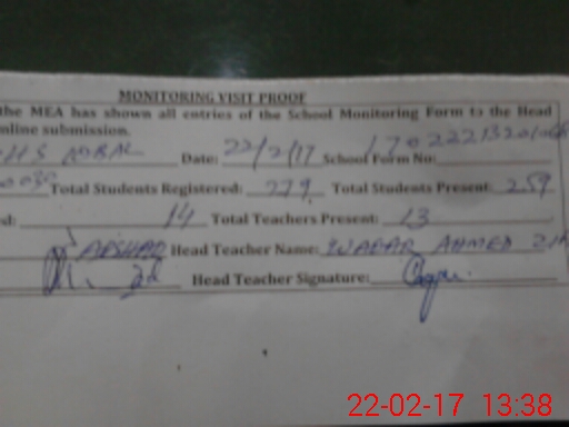| Attendance Register | Head Teacher | MEA with School | Visit Proof |
