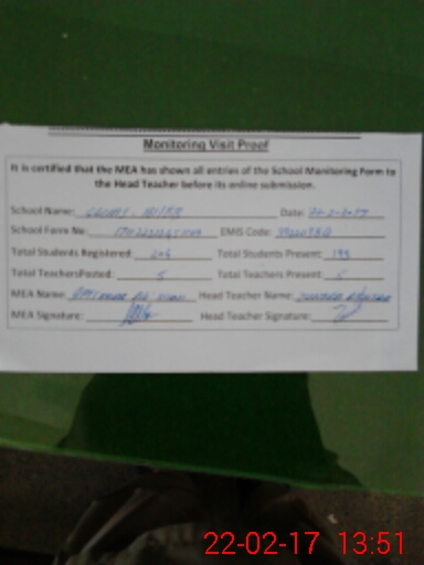 | Attendance Register | Head Teacher | MEA with School | Visit Proof |