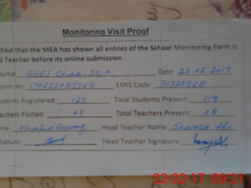 | EMIS Code: 31320528 | Name of School: GGES CHAK NO.50/A | |||
