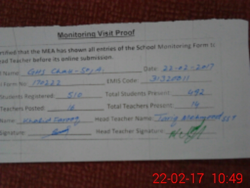| EMIS Code: 31320011 | Name of School: GHS CHAK NO 50/A | |||