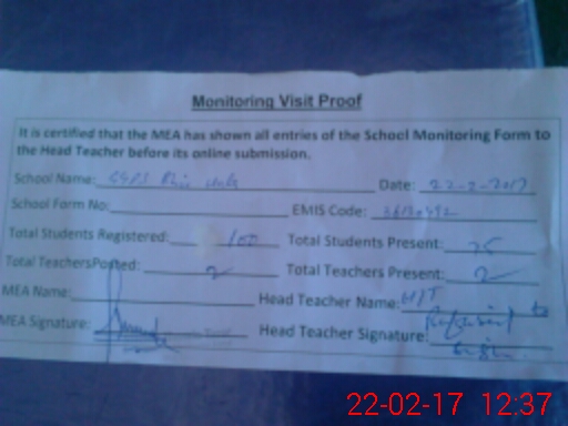 | Attendance Register | Head Teacher | MEA with School | Visit Proof |
