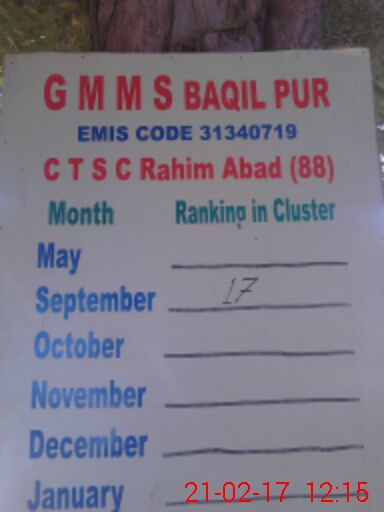 | EMIS Code: 31340719 | Name of School: GPS BAQIL PUR | |||