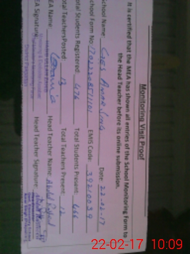 | Certified that this School was Inspected by the Undersigned MEA/DMO Today and the Information Stated Above is as Per Record. | |||||