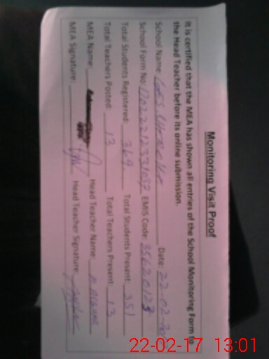 | Attendance Register | Head Teacher | MEA with School | Visit Proof |