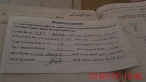 | Certified that this School was Inspected by the Undersigned MEA/DMO Today and the Information Stated Above is as Per Record. | |||||