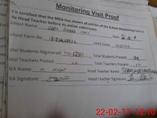 | Attendance Register | Head Teacher | MEA with School | Visit Proof |