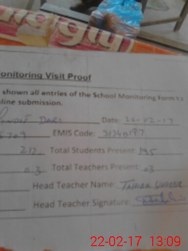 | Attendance Register | Head Teacher | MEA with School | Visit Proof |