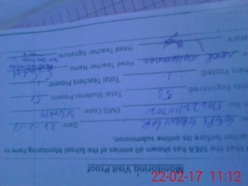 | Certified that this School was Inspected by the Undersigned MEA/DMO Today and the Information Stated Above is as Per Record. | |||||
