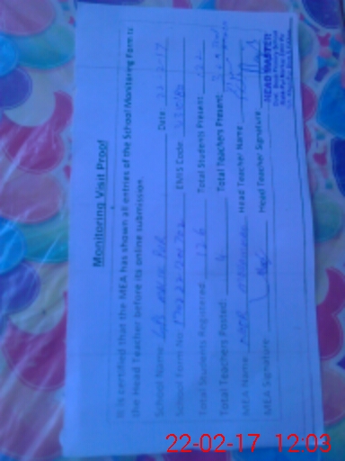 | Attendance Register | Head Teacher | MEA with School | Visit Proof |