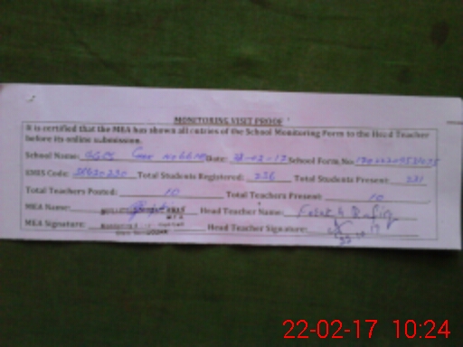 | Certified that this School was Inspected by the Undersigned MEA/DMO Today and the Information Stated Above is as Per Record. | |||||