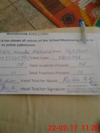 | EMIS Code: 38310346 | Name of School: GGPS WANDHA HABIB ULLAH KHAN WALA | |||