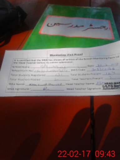 | Attendance Register | Head Teacher | MEA with School | Visit Proof |