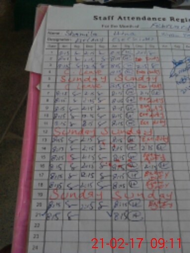| Attendance Register | Head Teacher | MEA with School | Visit Proof |