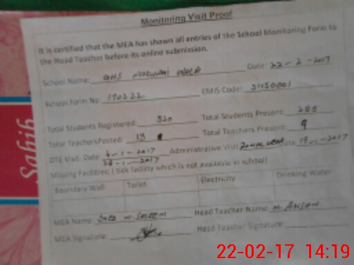 | Certified that this School was Inspected by the Undersigned MEA/DMO Today and the Information Stated Above is as Per Record. | |||||