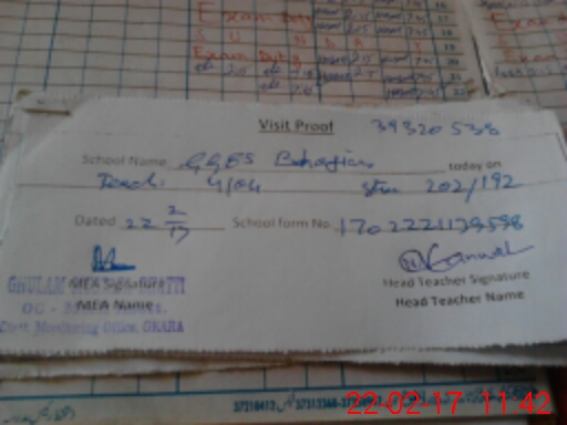 | Attendance Register | Head Teacher | MEA with School | Visit Proof |