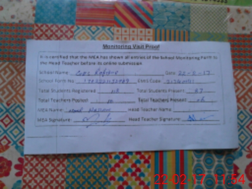 | Attendance Register | Head Teacher | MEA with School | Visit Proof |