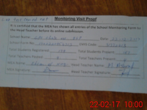 | Attendance Register | Head Teacher | MEA with School | Visit Proof |