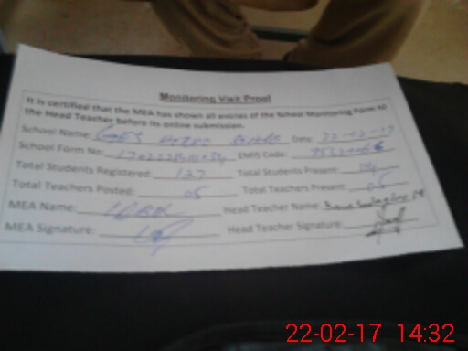 | Attendance Register | Head Teacher | MEA with School | Visit Proof |