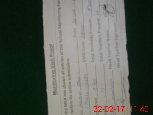 | Attendance Register | Head Teacher | MEA with School | Visit Proof |