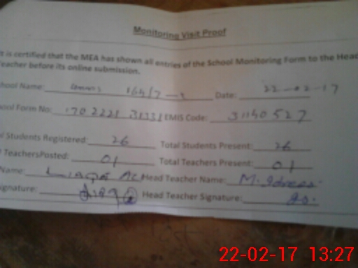 | Certified that this School was Inspected by the Undersigned MEA/DMO Today and the Information Stated Above is as Per Record. | |||||