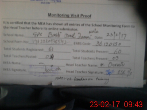 | EMIS Code: 36120150 | Name of School: GPS BASTI DAD ZAMAI WALA | |||