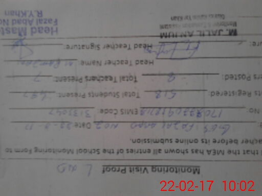 | EMIS Code: 31330470 | Name of School: GES FAZAL ABAD NO. 2 | |||