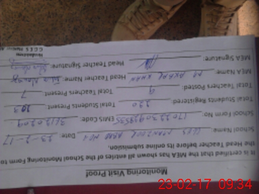 | Certified that this School was Inspected by the Undersigned MEA/DMO Today and the Information Stated Above is as Per Record. | |||||