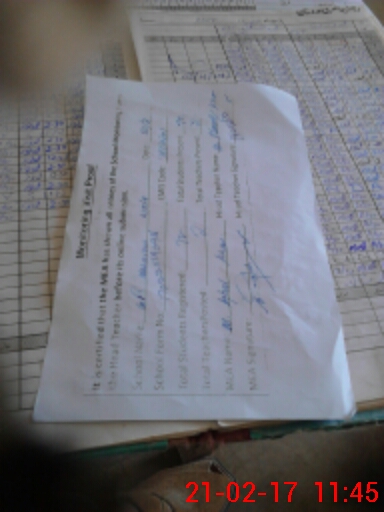 | Attendance Register | Head Teacher | MEA with School | Visit Proof |