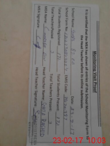 | Attendance Register | Head Teacher | MEA with School | Visit Proof |