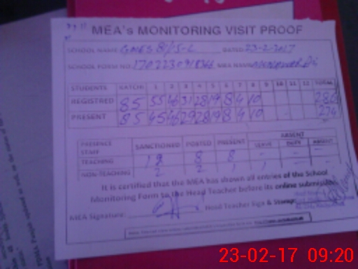 | Attendance Register | Head Teacher | MEA with School | Visit Proof |